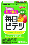 1日分の鉄と亜鉛を中心に、6種類の栄養素を補給できます。やさしい甘さのフルーツ味