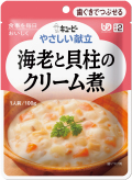 やわらかく仕立てたえびと貝柱を、じっくり炒めた玉ねぎ、じゃがいも、にんじんと一緒にクリーム感たっぷりのソースで煮込みました。 キューピー 100g ●:使用しています ー:使用していません - 18ヶ月 4901577041181ブランド